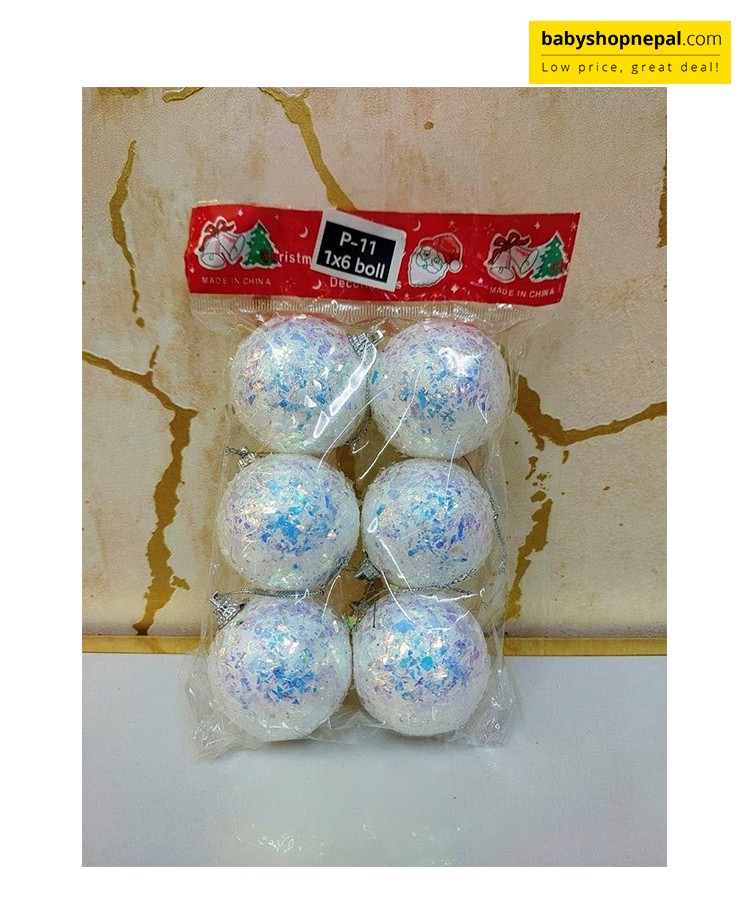Add a touch of winter magic to your holiday décor with this elegant 6-pack of white iridescent Christmas ball ornaments. Each ornament features a classic round shape coated in soft white color and dusted with shimmering, snow-like iridescent glitter flakes. The frosted finish catches the light beautifully, creating a sparkling, snowy glow that enhances the festive charm of any Christmas tree.
