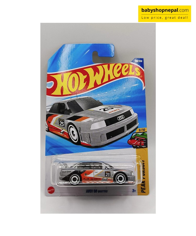 Conquer the mountains and dominate the track with the Hot Wheels 2023 Audi 90 Quattro, part of the adrenaline-fueled Peak Pursuit Series! Inspired by Audi's legendary rally heritage, this die-cast racer captures the aggressive stance, detailed bodywork, and iconic Quattro performance spirit that made it a motorsport icon.