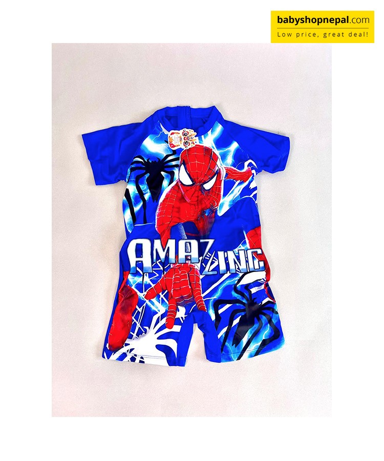 Make a splash with superhero flair in this Amazing Spider-Man One-Piece Swimsuit for boys! Set against a bold blue background, this action-packed swimsuit features a dynamic Spider-Man design with the word "Amazing" printed proudly on the front — perfect for your little web-slinger.
