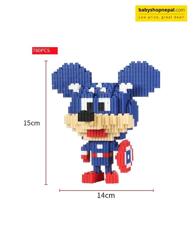 Unite two iconic worlds with the Captain America-themed Mickey Mouse Micro Building Blocks Set — 780 Pieces! This delightful and challenging build brings together the classic charm of Mickey Mouse with the heroic spirit of Captain America, creating a unique collectible that fans of all ages will love. With 780 precision micro blocks, you’ll piece together a detailed 3D figure featuring Mickey in his bold Captain America-inspired outfit — complete with shield and signature colors.