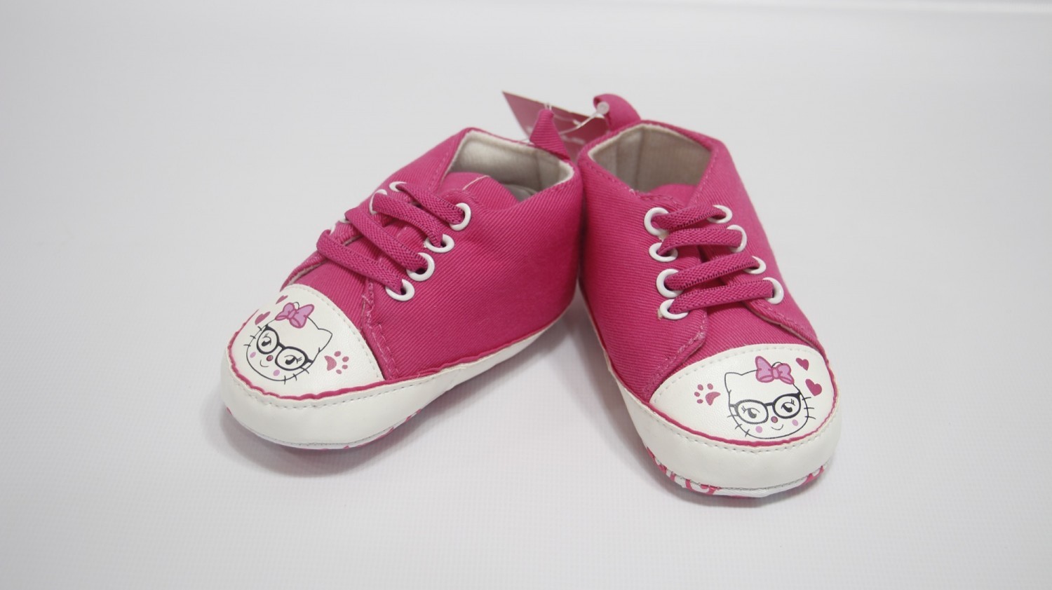 Cute, light and durable shoes for girls are now available. Laces style fastener. The white and pink colour combination with a cute kitten on front makes it very attractive.