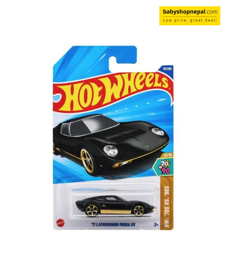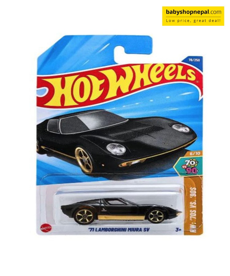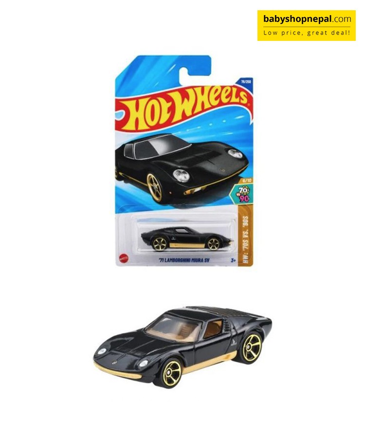 From the signature low-slung profile to the aggressive rear design and sharp detailing, this Hot Wheels release is a must-have for car enthusiasts and collectors alike. Whether displayed on a shelf or raced on the track, the '71 Miura SV delivers timeless Lamborghini flair in a compact 1:64 scale.